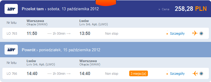 „Szalona Środa” w Locie przyniosła tym razem wyjątkowo tanie bilety do Lwowa. Ukraińskie miasta rzadko można odwiedzać w przystępnych cenach, toteż 258 zł za bilety w obie strony z warszawskiego Okęcia to na prawdę niezła okazja.